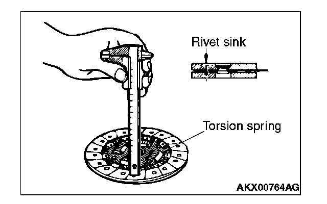 2. Measure the rivet sink. Replace the clutch disc if it is below the limit.