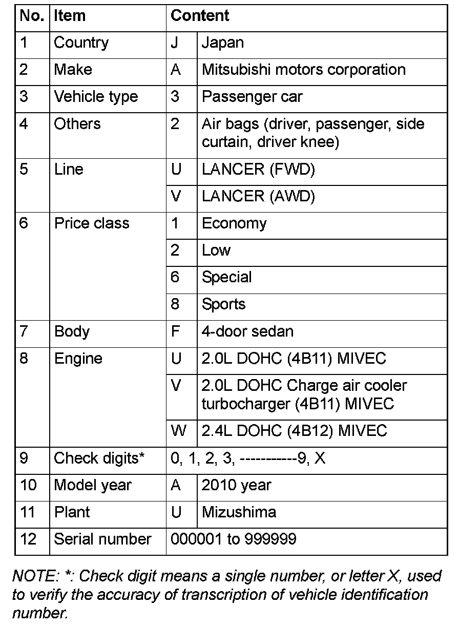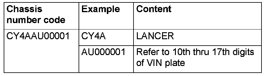 CHASSIS NUMBER CODE CHART