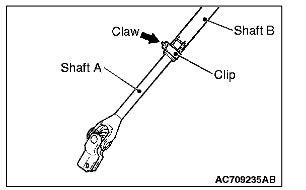 1. Pinch the claw of the clip shown in the figure. While sliding shaft A from shaft B, connect the steering column shaft assembly with the steering gear and linkage assembly.