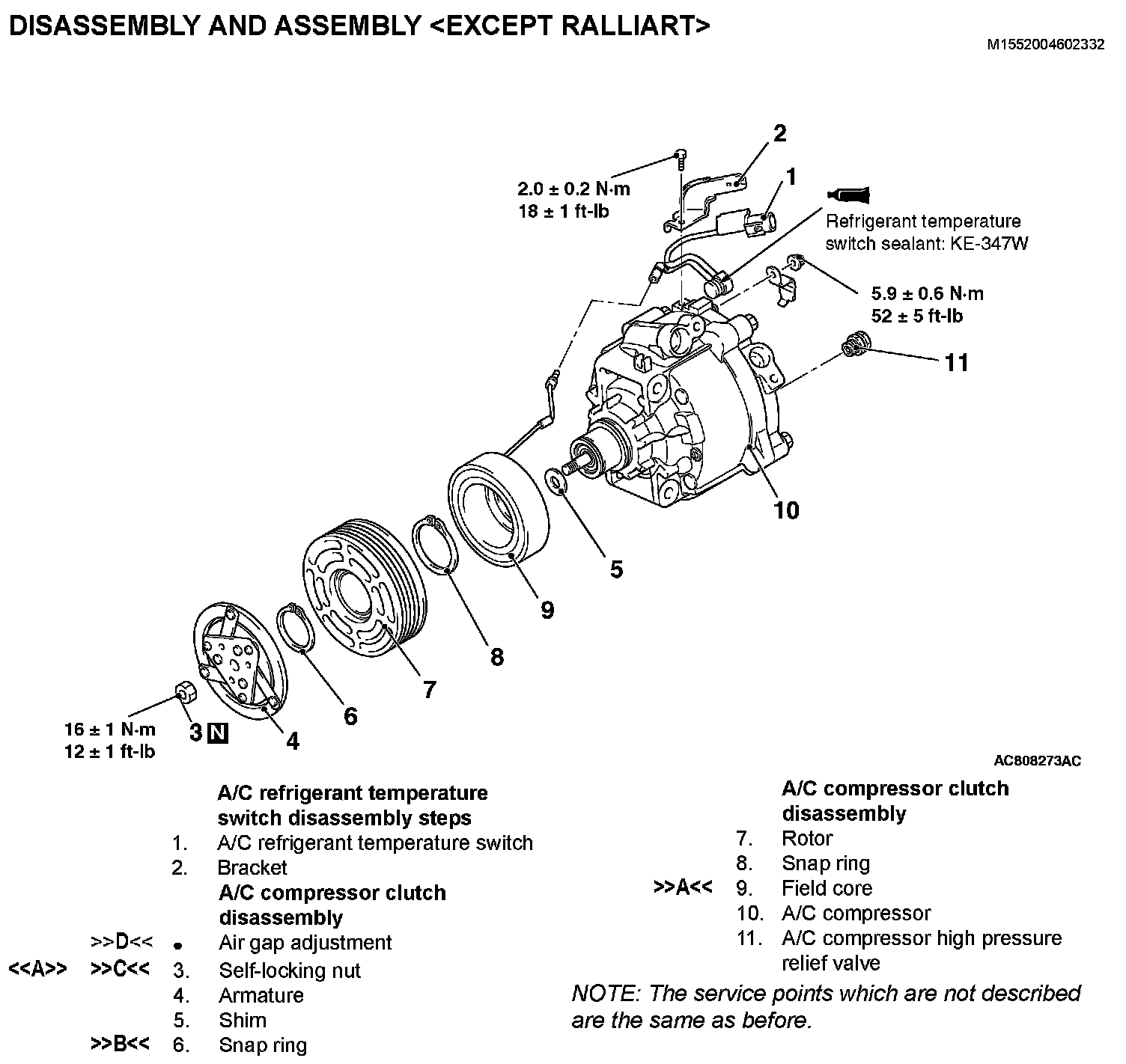 COMPRESSOR ASSEMBLY [Except RALLIART]DISASSEMBLY AND ASSEMBLY [EXCEPT RALLIART]