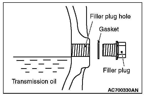 TRANSAXLE OIL REPLACEMENT1. Remove the filler plug and gasket.