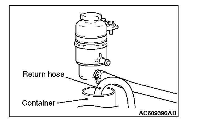 2. Disconnect the return hose connection, and then connect a vinyl hose to the return hose, and drain the fluid into a container.
