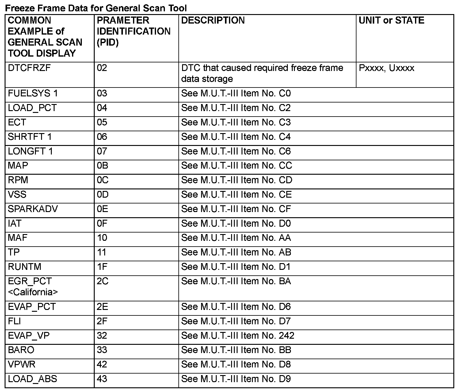 Freeze Frame Data (OBD) For M.U.T.-III (Part 1):