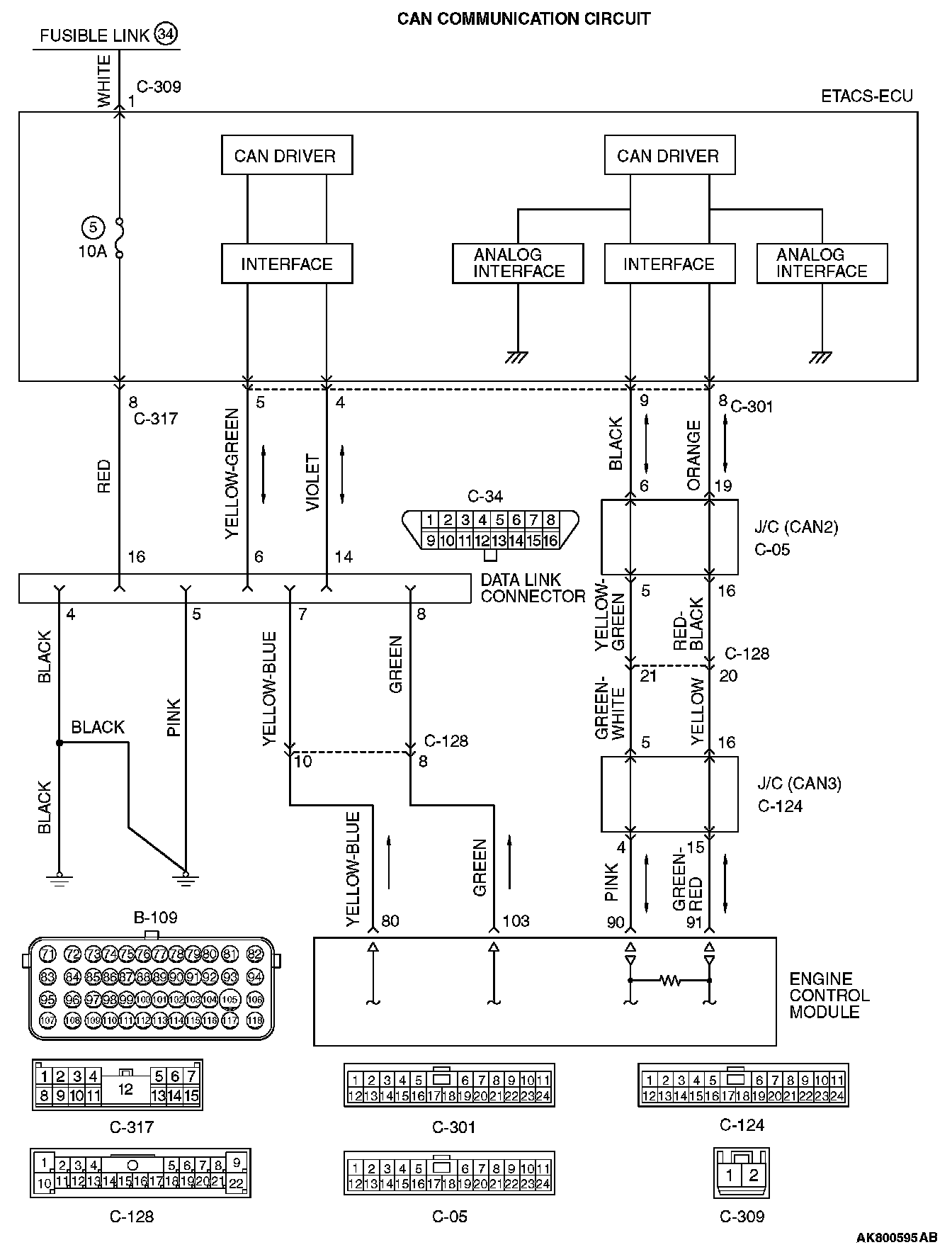 STEP 4. Check the continuity at data link connector C-34.