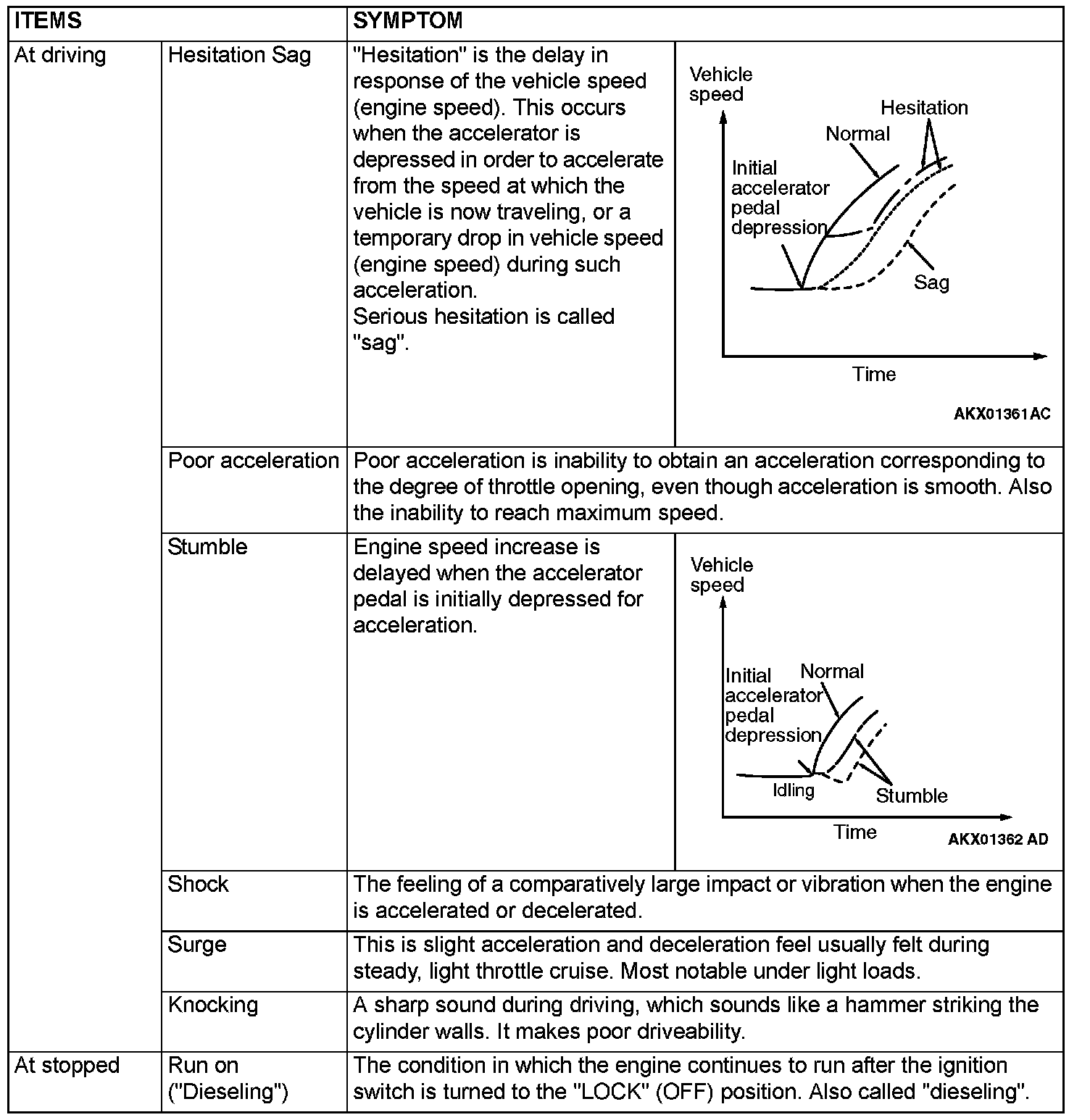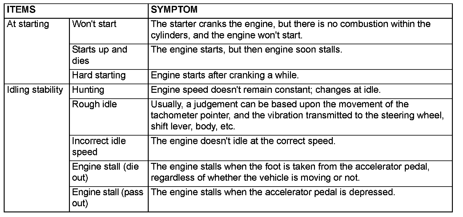PROBLEM SYMPTOMS TABLE (FOR YOUR INFORMATION)