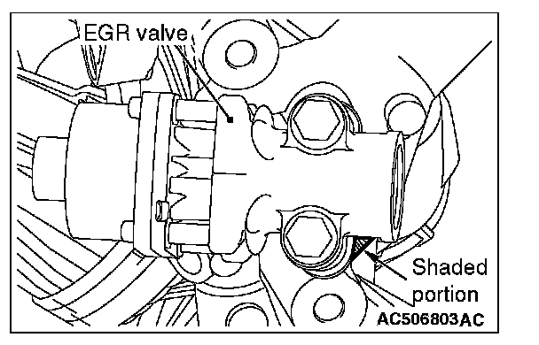 Install the EGR valve gasket so that its shaded portion is set as shown in the figure. Be sure to check which side of the gasket faces outside.
