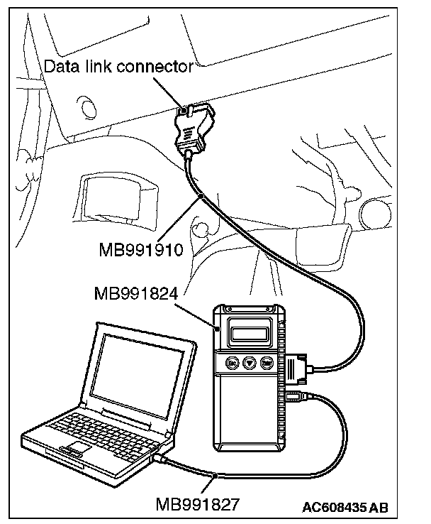 To prevent damage to scan tool MB991958, always turn the ignition switch to the "LOCK" (OFF) position before connecting or disconnecting scan tool MB991958.