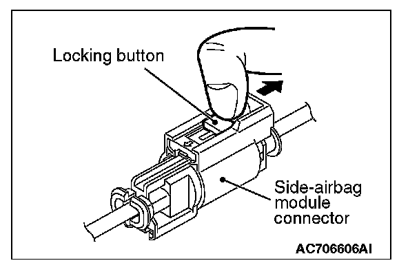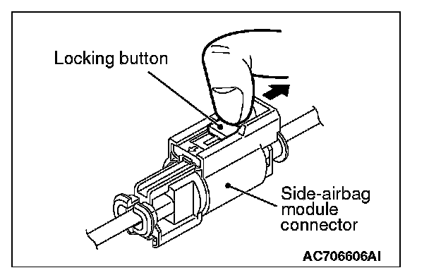 2. Disconnect the D-32 side-airbag module connector, unlock the connector by sliding the locking button to the direction of the arrow as shown in the figure, and then disconnect the connector.