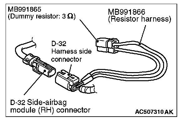 4. Insert special tool MB991866 into the D-32 harness side connector by backprobing.