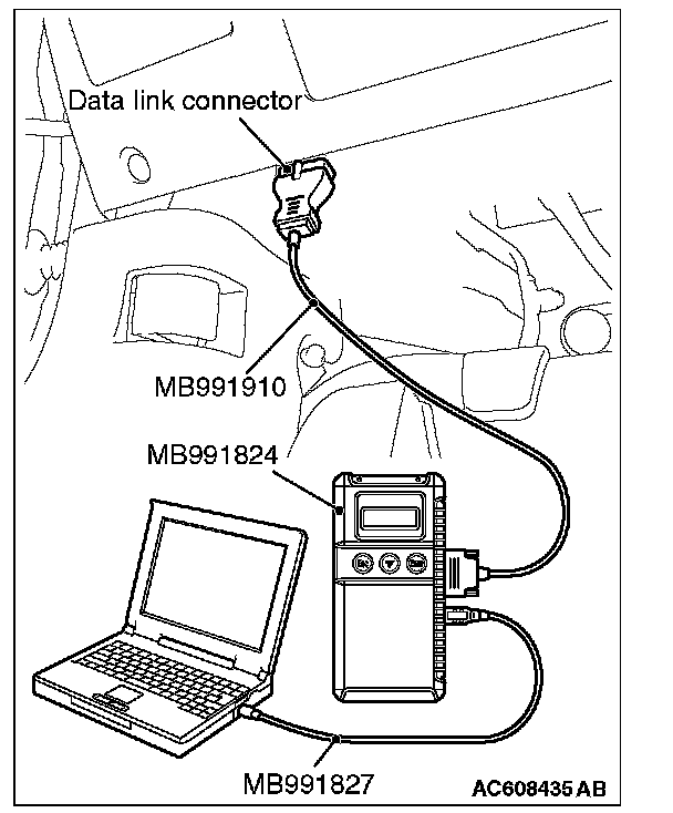 To prevent damage to scan tool MB991958, always turn the ignition switch to the "LOCK" (OFF) position before connecting or disconnecting scan tool MB991958.