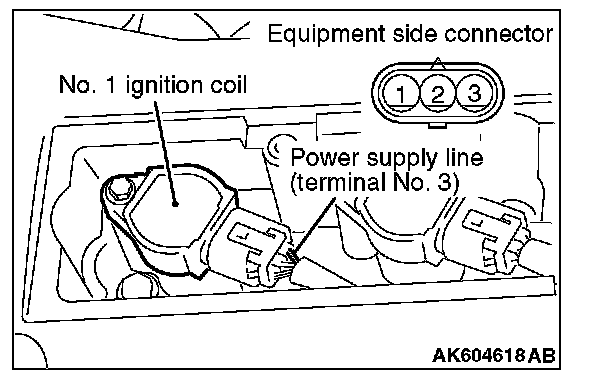 3. Set the timing light to the power supply line (terminal No. 3) of the ignition coil No. 1.