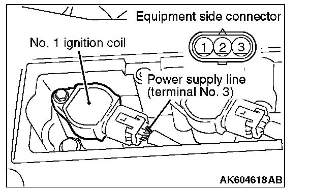 3. Set the timing light to the power supply line (terminal No. 3) of the ignition coil No. 1.