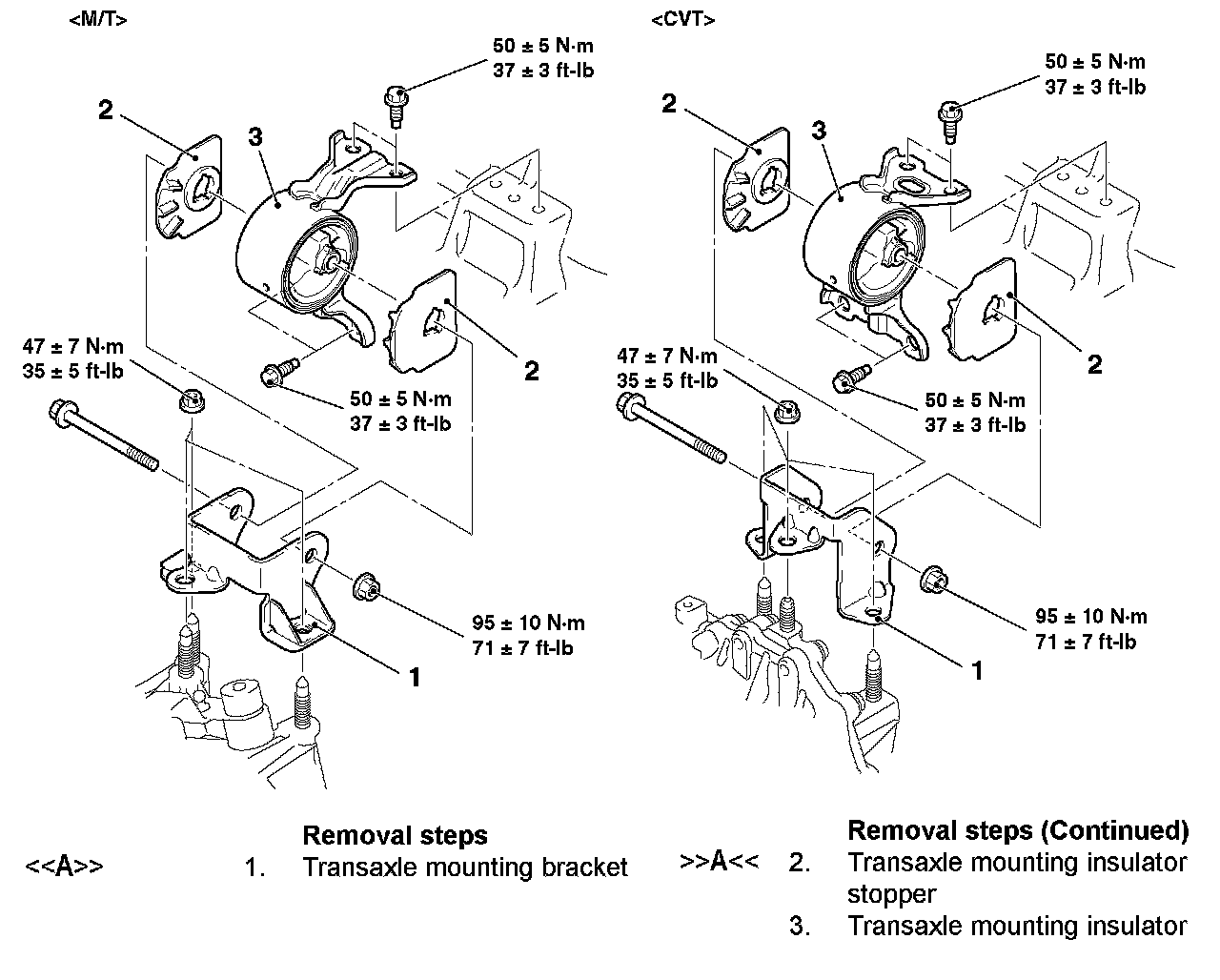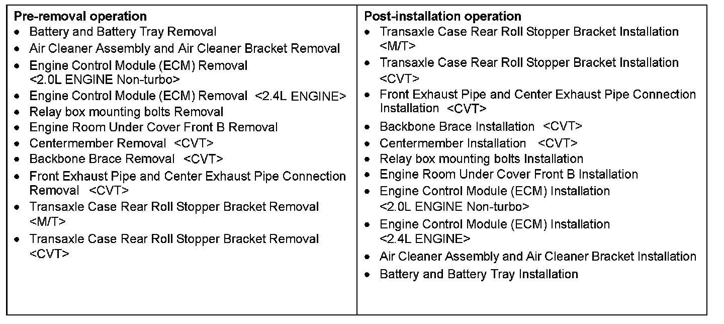 TRANSAXLE MOUNTINGREMOVAL AND INSTALLATION [2.0L ENGINE NON-TURBO, 2.4L ENGINE]