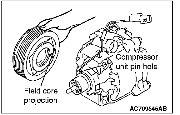 Line up the pin hole on the compressor unit with the field core projection and attach.