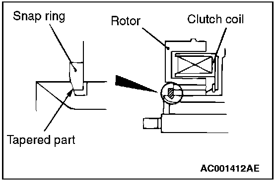 Using snap ring pliers, fit the snap ring so that the snap ring s tapered part is on the outside.