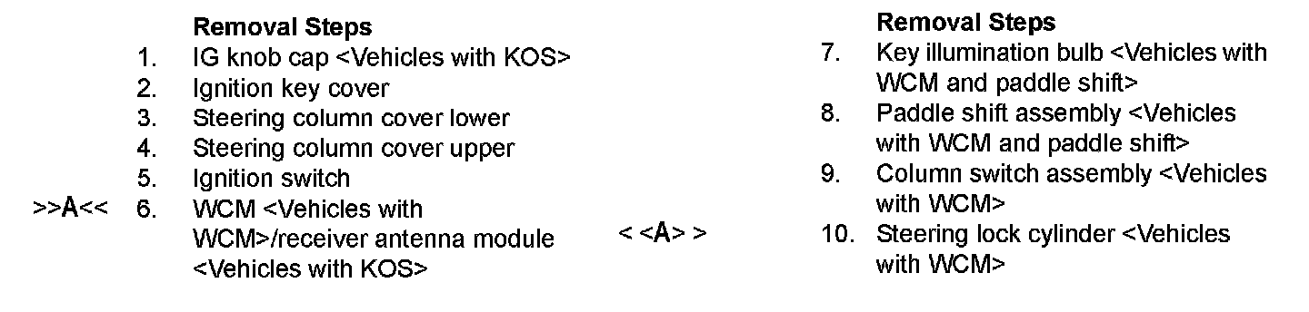 ]]A[[ STEERING LOCK CYLINDER REMOVAL [VEHICLES WITH WCM]