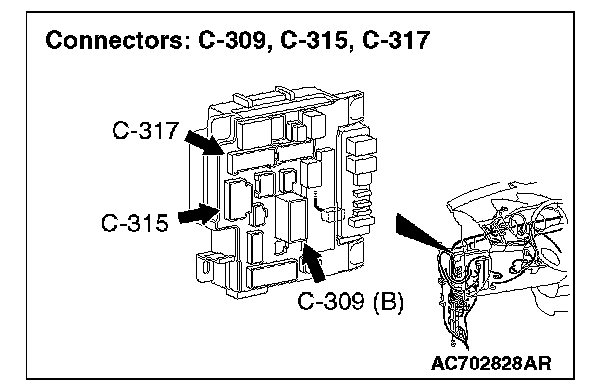 STEP 3. Connector check: A-02 ASC-ECU connector, C-33 intermediate connector, C-317 ETACS-ECU connector, C-315 ETACS-ECU connector