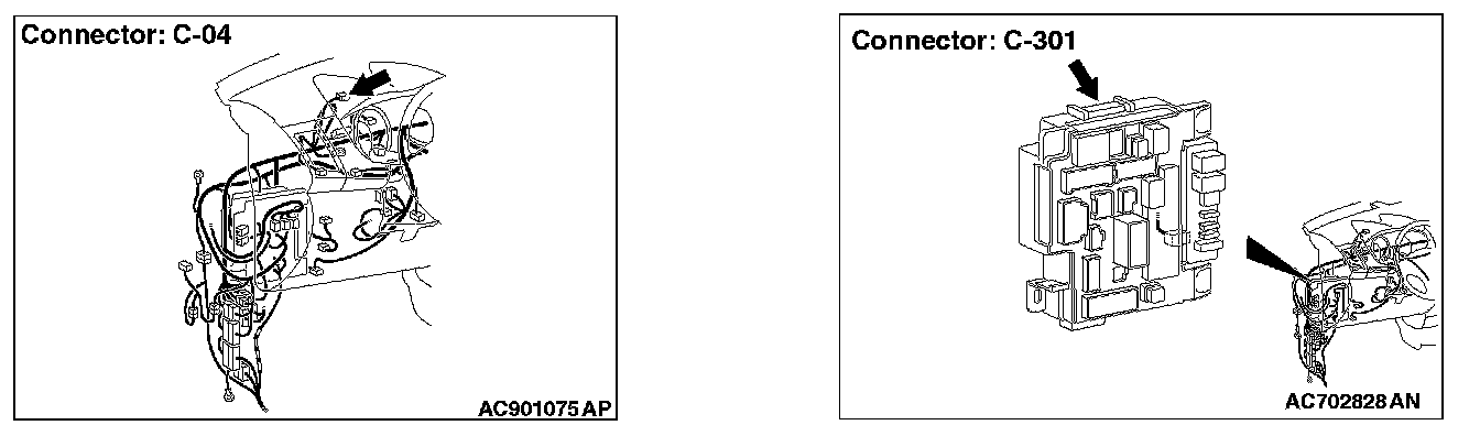 STEP 1. Check joint connector (CAN2) C-04 and ETACS-ECU connector C-301 for loose, corroded or damaged terminals, or terminals pushed back in the connector.