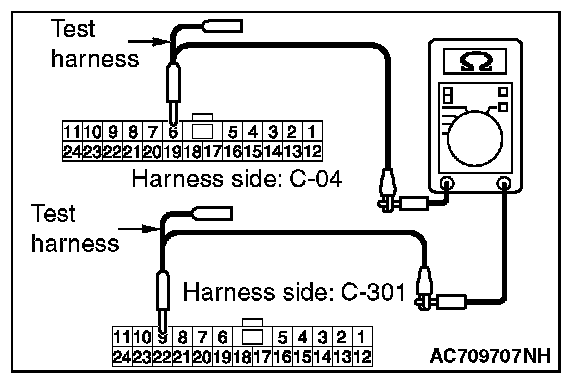 2. Check the wiring harness between joint connector (CAN2) C-04 (terminal No.6) and ETACS-ECU connector C-301 (terminal No.9)