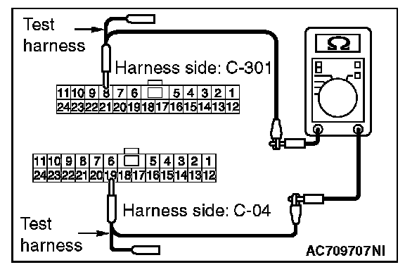 3. Check the wiring harness between joint connector (CAN2) C-04 (terminal No.19) and ETACS-ECU connector C-301 (terminal No.8)