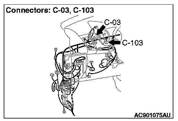 STEP 1. Check joint connector (CAN1) C-103 and combination meter connector C-03 for loose, corroded or damaged terminals, or terminals pushed back in the connector.