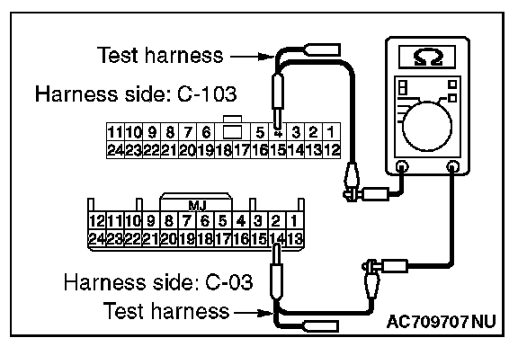 2. Check the wiring harness between joint connector (CAN1) C-103 (terminal No.4) and combination meter connector C-03 (terminal No.14)