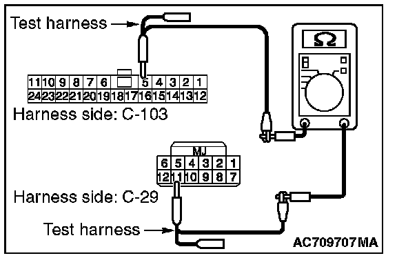 2. Check the wiring harness between joint connector (CAN1) C-103 (terminal No.5) and WCM connector C-29 (terminal No.11)