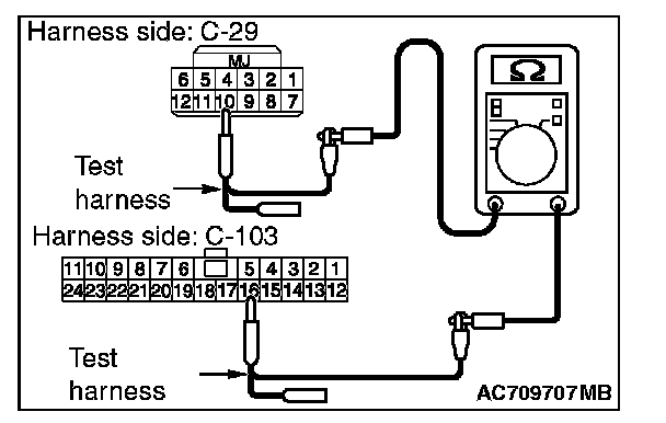 3. Check the wiring harness between joint connector (CAN1) C-103 (terminal No.16) and WCM connector C-29 (terminal No.2)