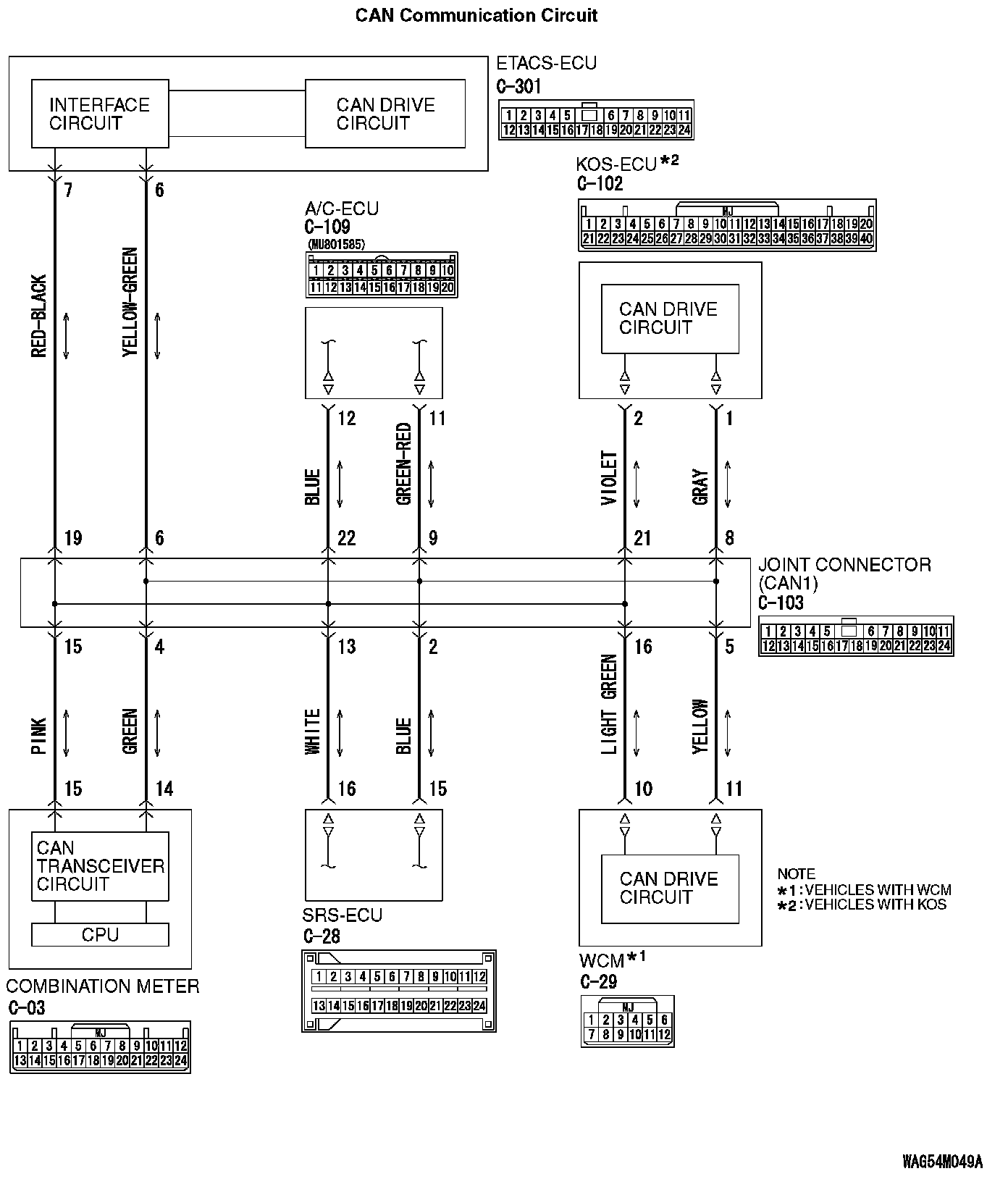 2. Check the wiring harness between joint connector (CAN1) C-103 (terminal No.9) and A/C-ECU connector C-109 (terminal No.11)