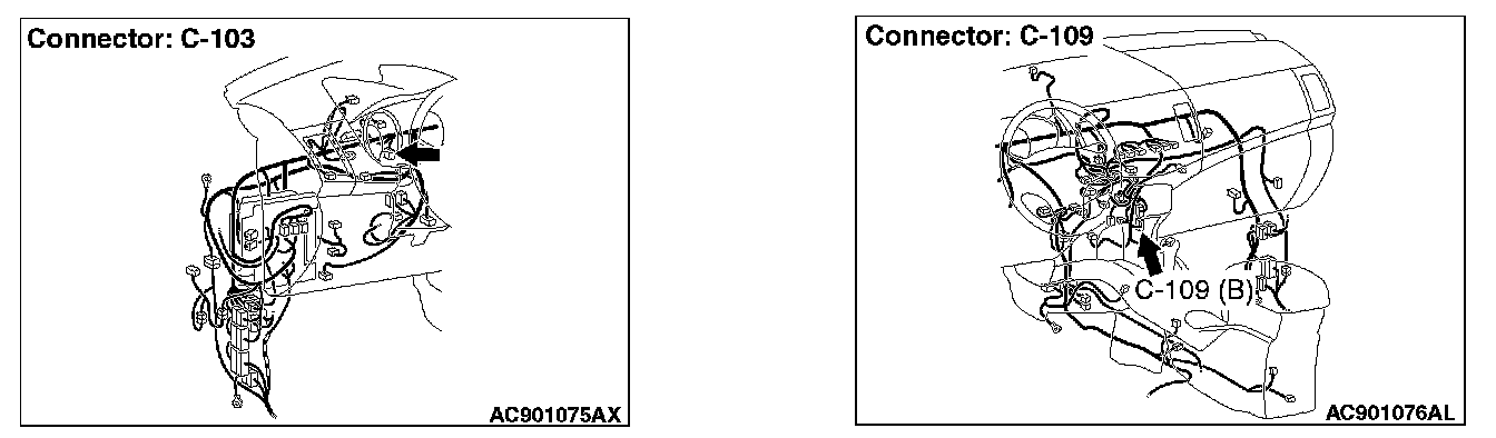 STEP 1. Check joint connector (CAN1) C-103 and A/C-ECU connector C-109 for loose, corroded or damaged terminals, or terminals pushed back in the connector.