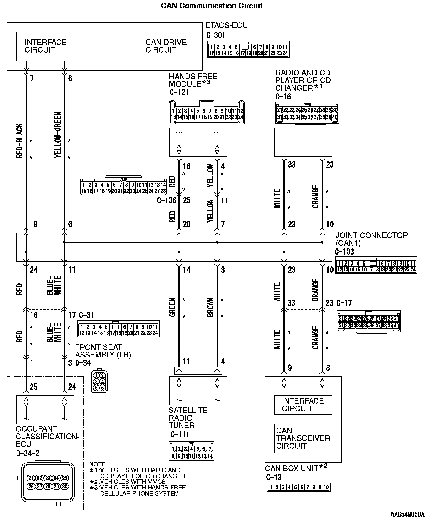 3. Check the wiring harness between joint connector (CAN1) C-103 (terminal No.23) and radio and CD player or radio and CD changer connector C-16 (terminal No.33)