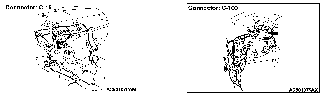 STEP 1. Check joint connector (CAN1) C-103 and radio and CD player or radio and CD changer connector C-16 for loose, corroded or damaged terminals, or terminals pushed back in the connector.