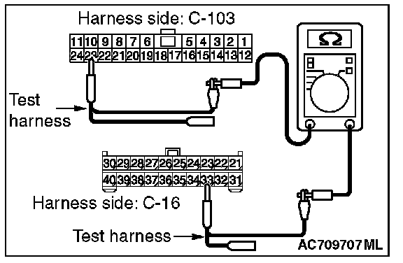 2. Check the wiring harness between joint connector (CAN1) C-103 (terminal No.10) and radio and CD player or radio and CD changer connector C-16 (terminal No.23)
