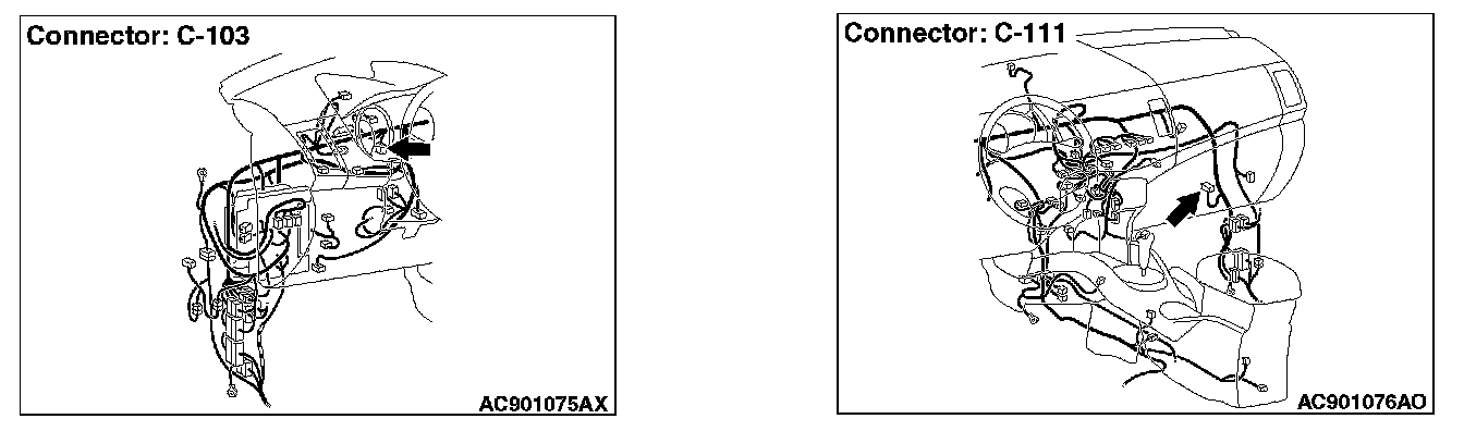 STEP 1. Check joint connector (CAN1) C-103 and satellite radio tuner connector C-111 for loose, corroded or damaged terminals, or terminals pushed back in the connector.