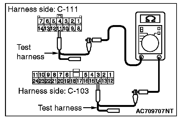 3. Check the wiring harness between joint connector (CAN1) C-103 (terminal No.14) and satellite radio tuner connector C-111 (terminal No.11)
