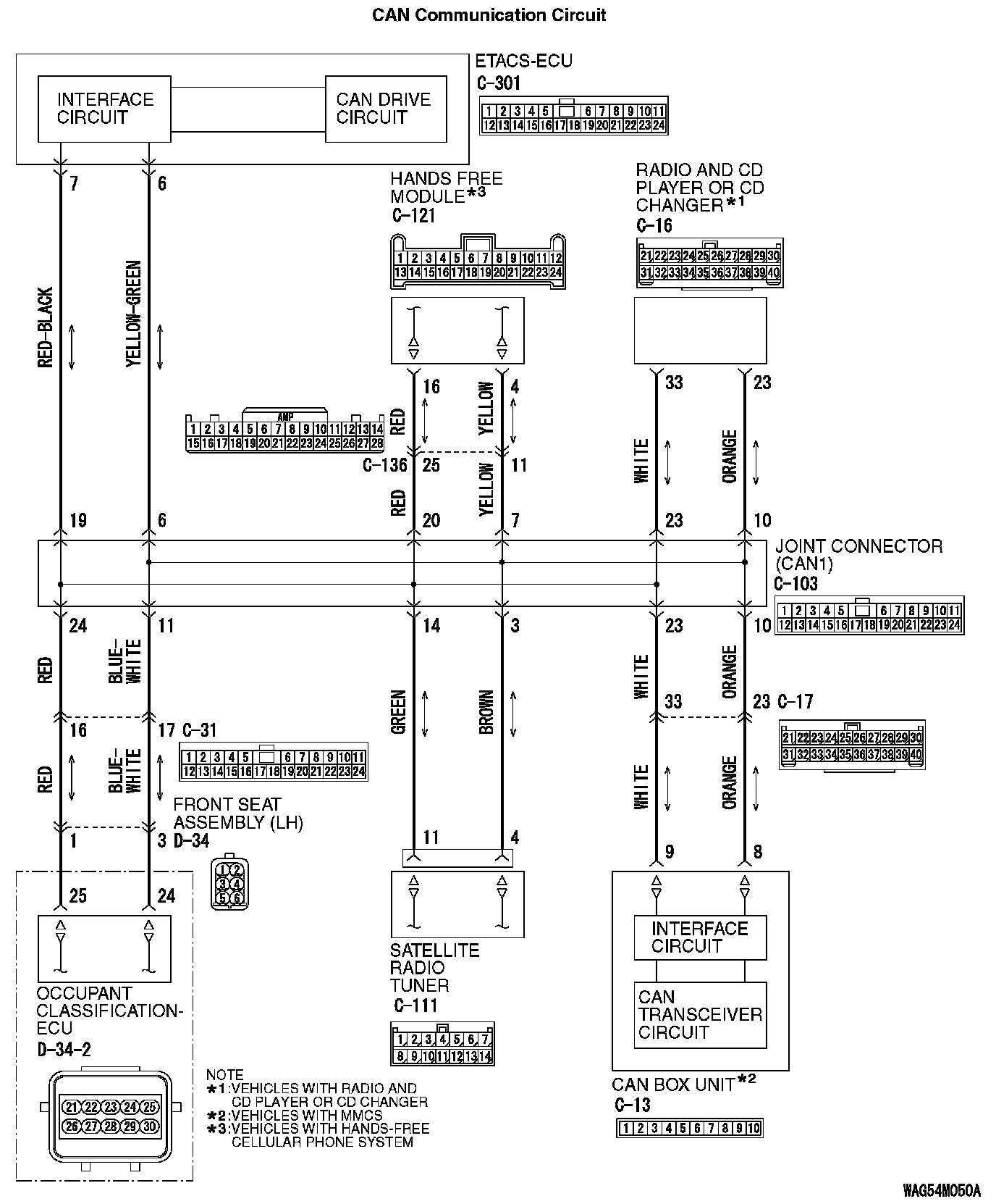 1. Disconnect joint connector (CAN1) C-103 and hands free module connector C-121, and check the wiring harness.