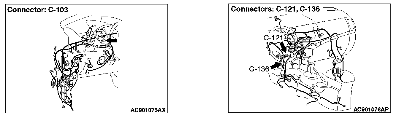STEP 1. Check joint connector (CAN1) C-103, hands free module connector C-121 and intermediate connector C-136 for loose, corroded or damaged terminals, or terminals pushed back in the connector.