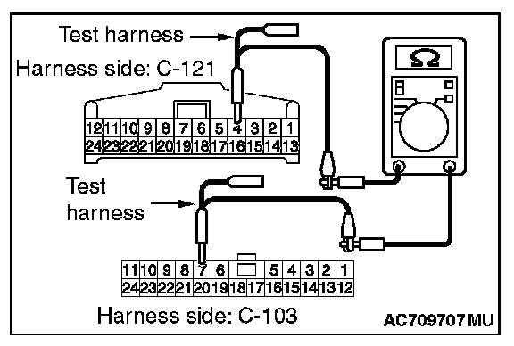 STEP 2. Check the wiring harness between joint connector (CAN1) C-103 and hands free module connector C-121 for open circuit.