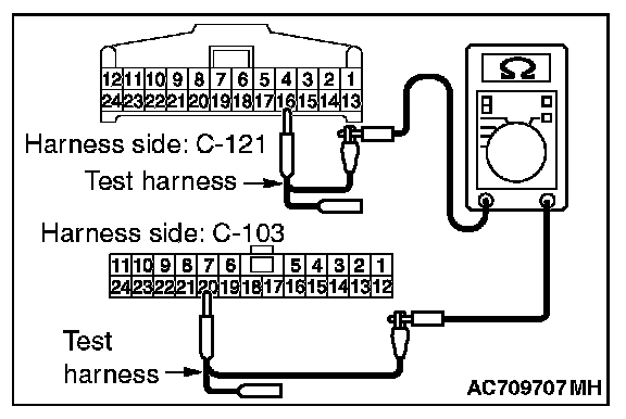 3. Check the wiring harness between joint connector (CAN1) C-103 (terminal No.20) and hands free module connector C-121 (terminal No.16)