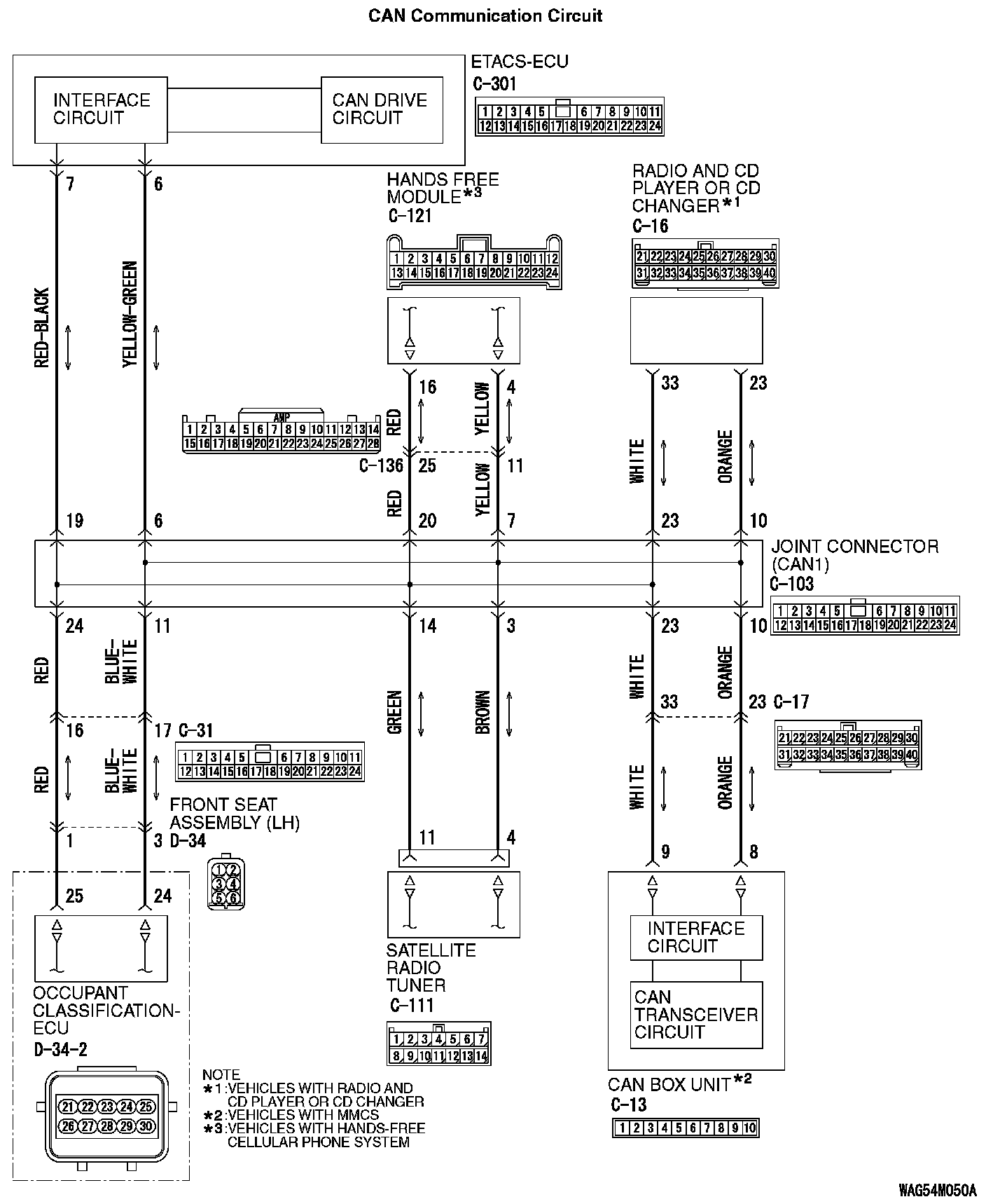 1. Disconnect joint connector (CAN1) and ETACS-ECU connector C-301, and measure the resistance at the wiring harness side of joint connector (CAN1).