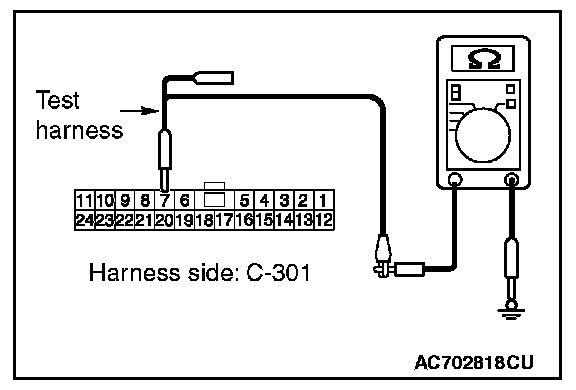 1. Disconnect ETACS-ECU connector C-301, and check that there is continuity at the harness side of ETACS-ECU.