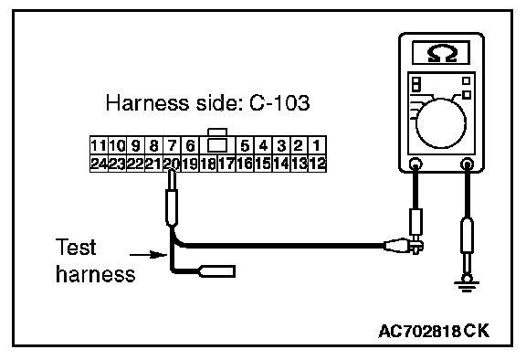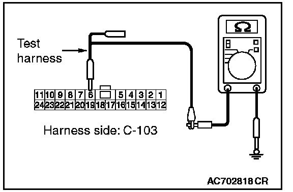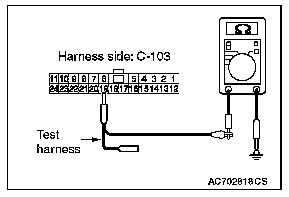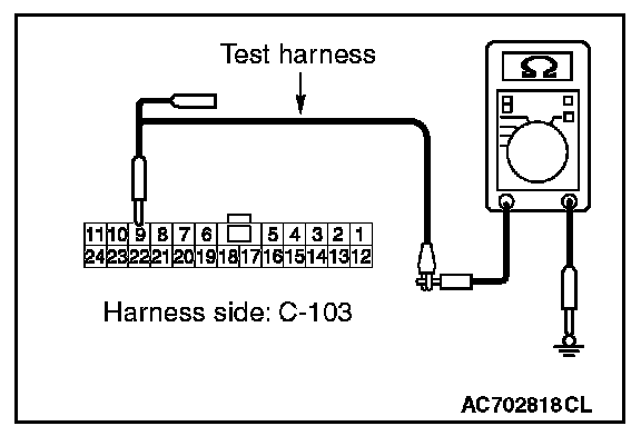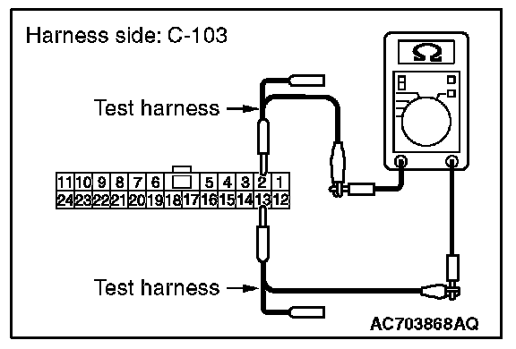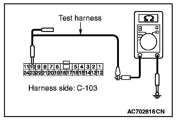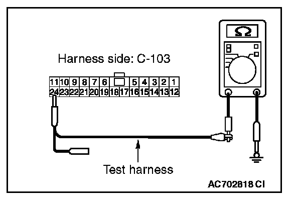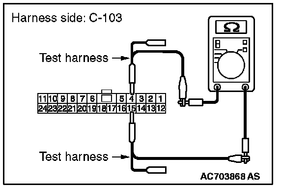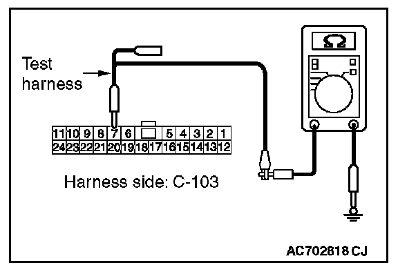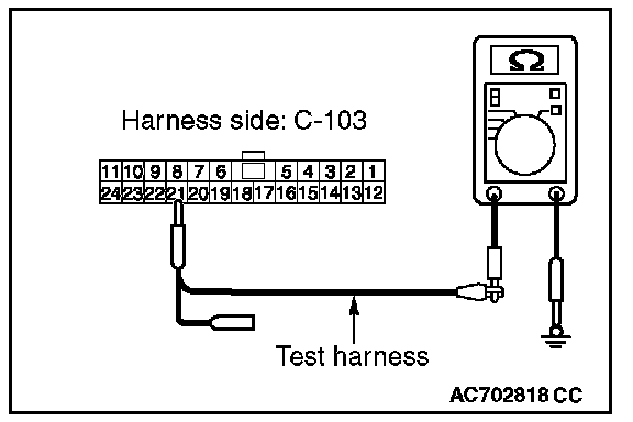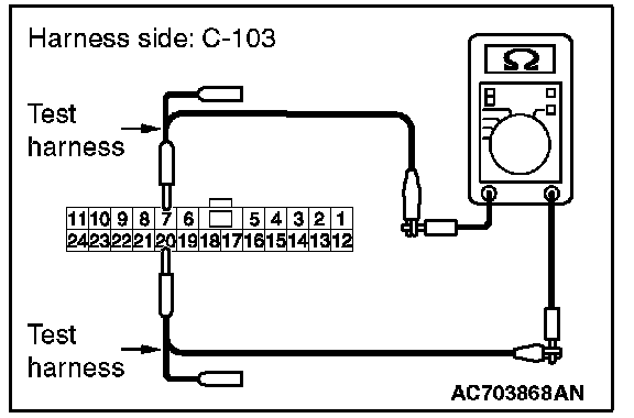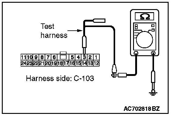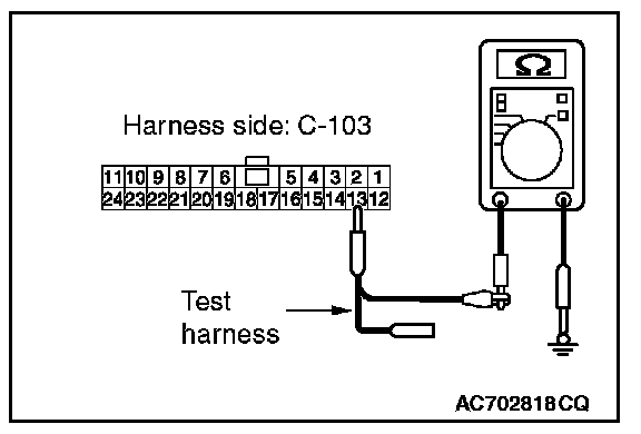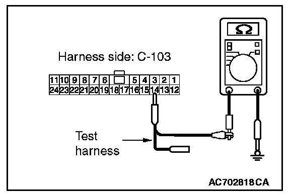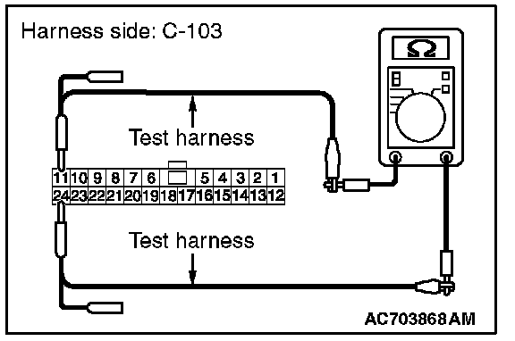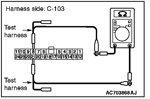 STEP 12. Check the wiring harness between joint connector (CAN1) C-103 and ETACS-ECU connector C-301 for a short to ground. Measure the resistance at joint connector (CAN1) C-103.