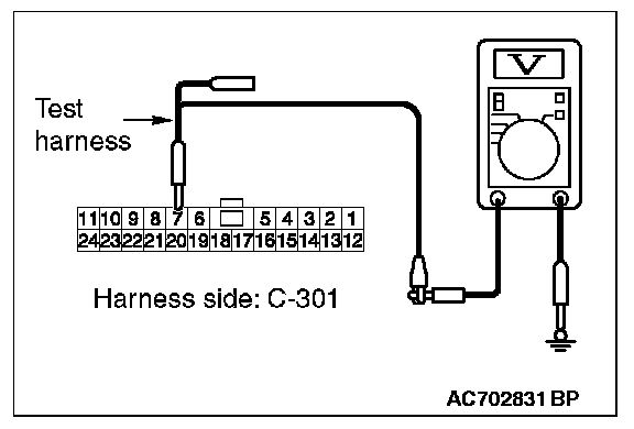 STEP 13. Check the wiring harness between ETACS-ECU connector C-301 and body ground for a short to power supply. Measure the voltage at ETACS-ECU connector C-301.