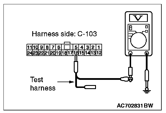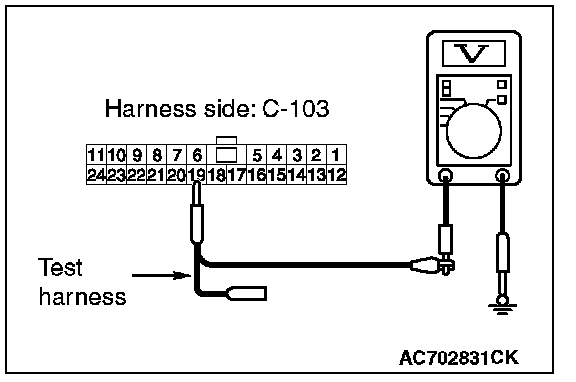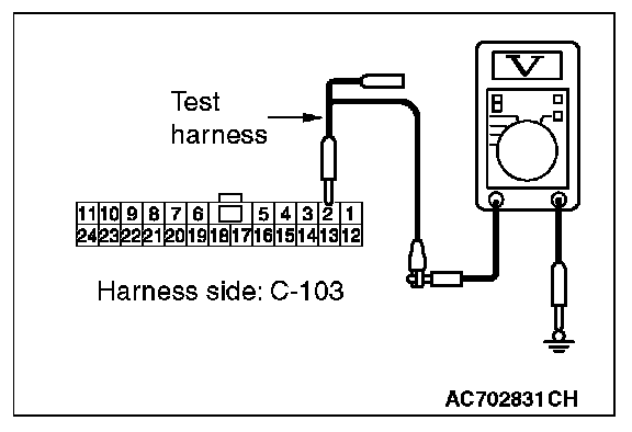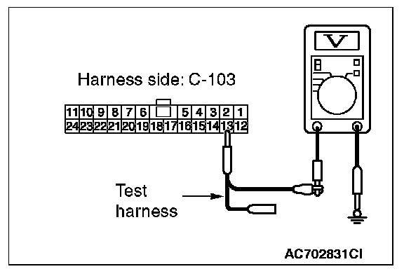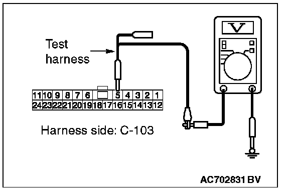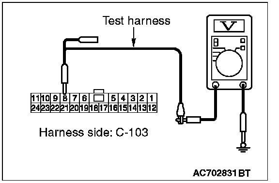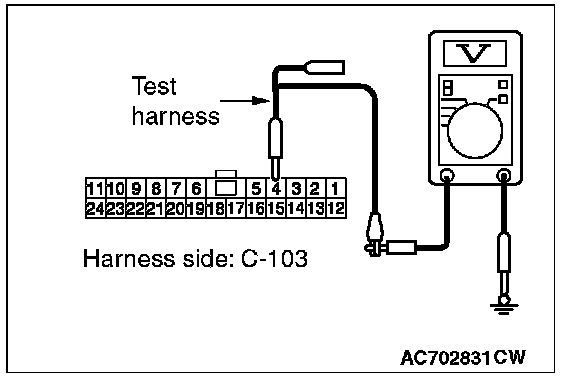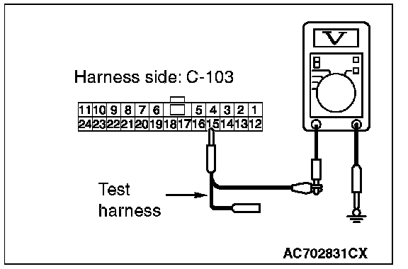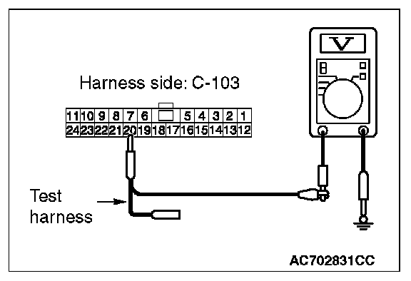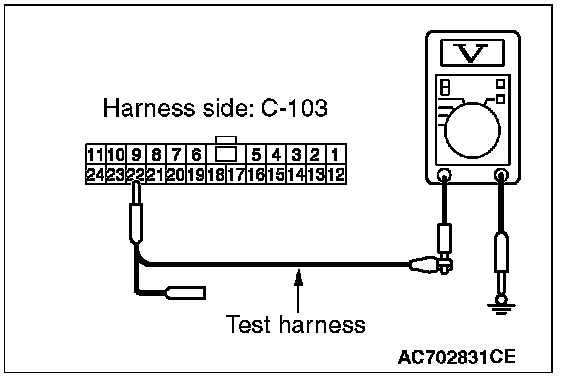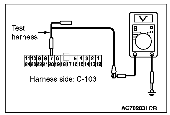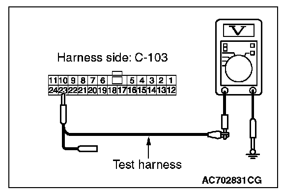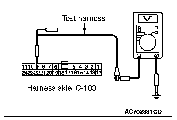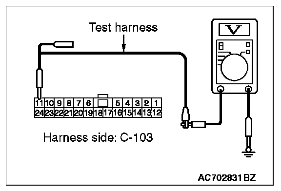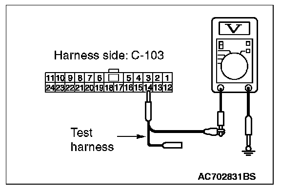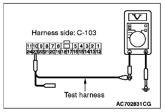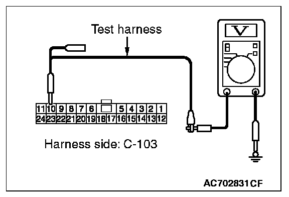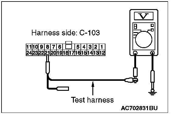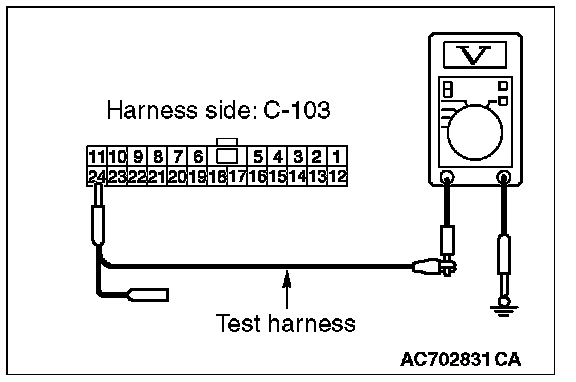 STEP 24. Check the wiring harness between joint connector (CAN1) C-103 and ETACS-ECU connector C-301 for a short to power supply. Measure the voltage at joint connector (CAN1) C-103.