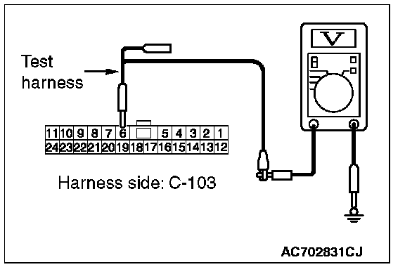 3. Measure the voltage between ETACS-ECU connector terminal 6 and body ground.