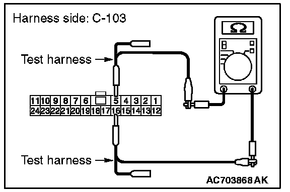 STEP 26. Check the wiring harness between joint connector (CAN1) C-103 and combination meter connector C-03 for line-to-line short. Measure the resistance at joint connector (CAN1) C-103.