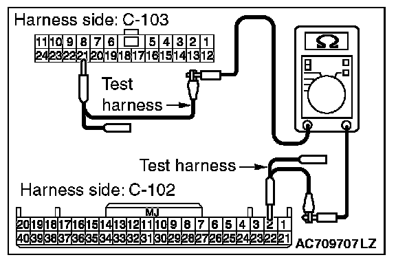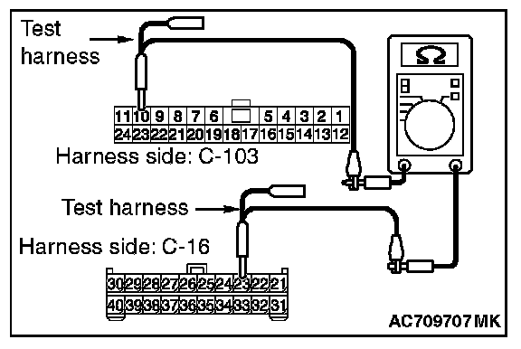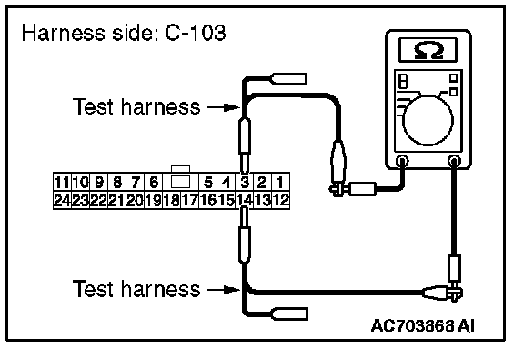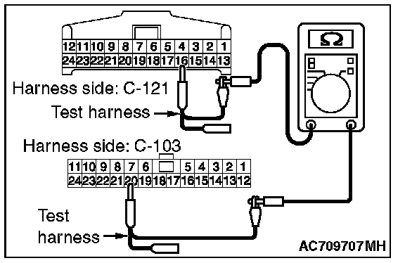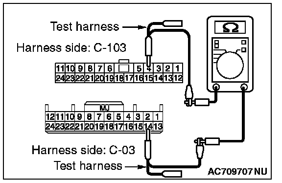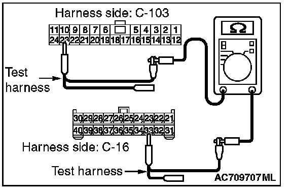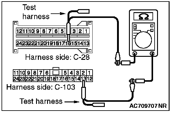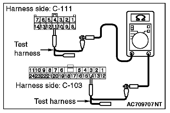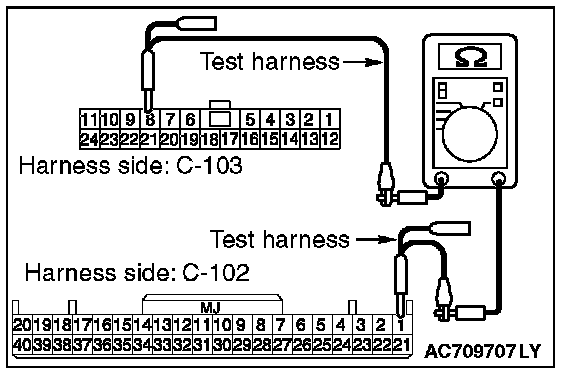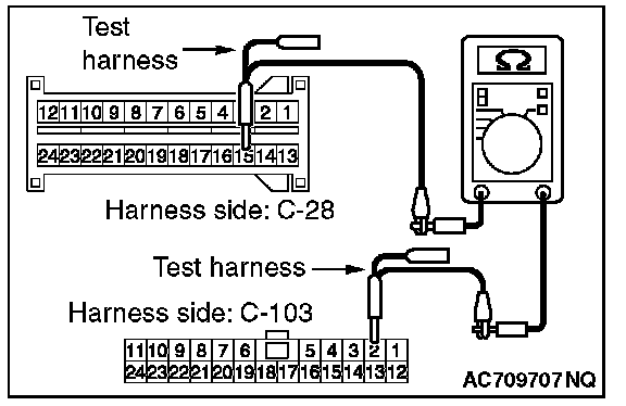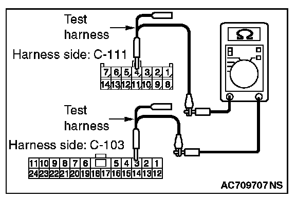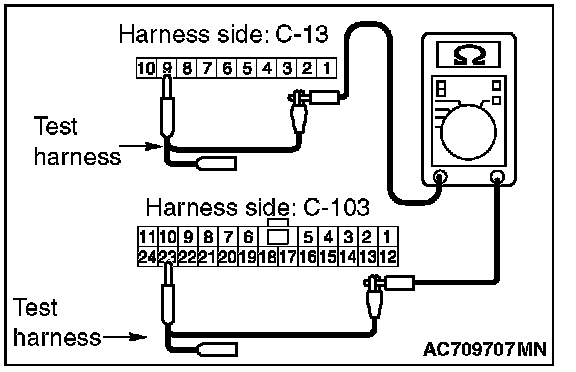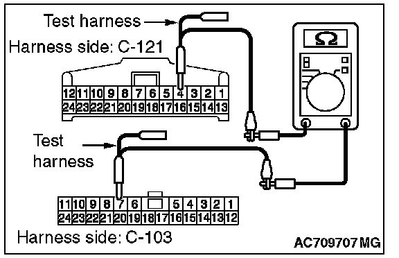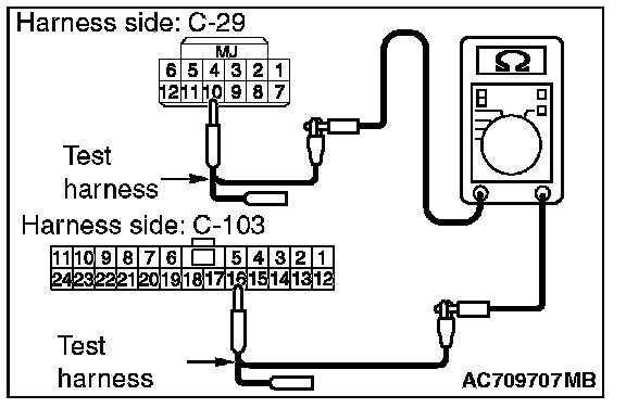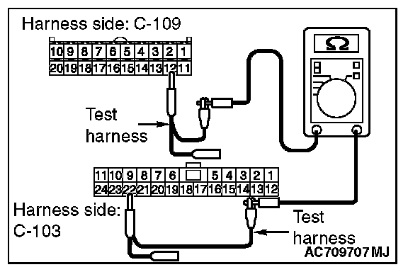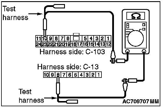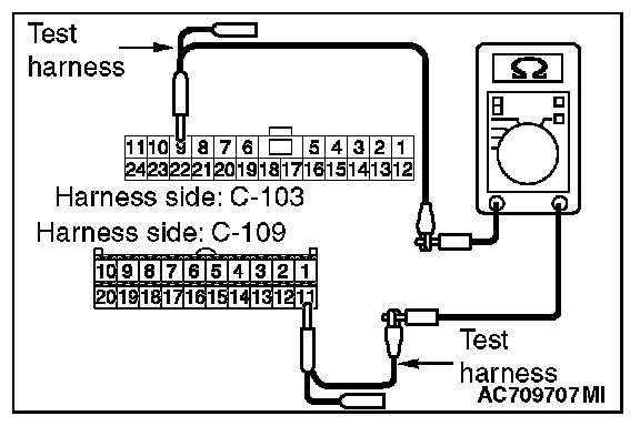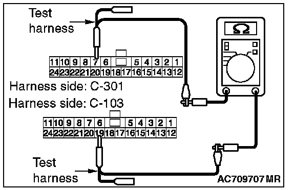 3. Check the wiring harness between joint connector (CAN1) C-103 (terminal No.19) and ETACS-ECU connector C-301 (terminal No.7)