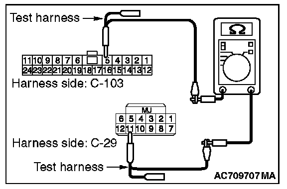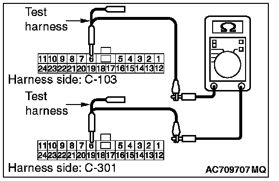 2. Check the wiring harness between joint connector (CAN1) C-103 (terminal No.6) and ETACS-ECU connector C-301 (terminal No.6)