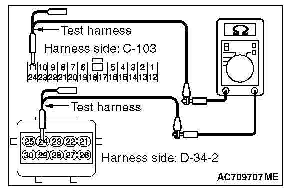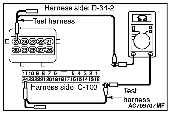 3. Check the wiring harness between joint connector (CAN1) C-103 (terminal No.24) and occupant classification-ECU connector D-34-2 (terminal No.25)