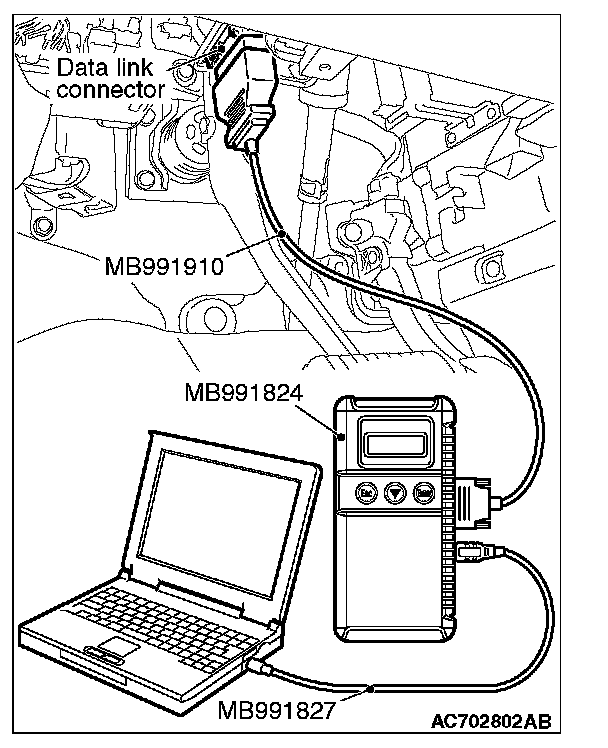 2. Connect scan tool MB991958 to the data link connector.